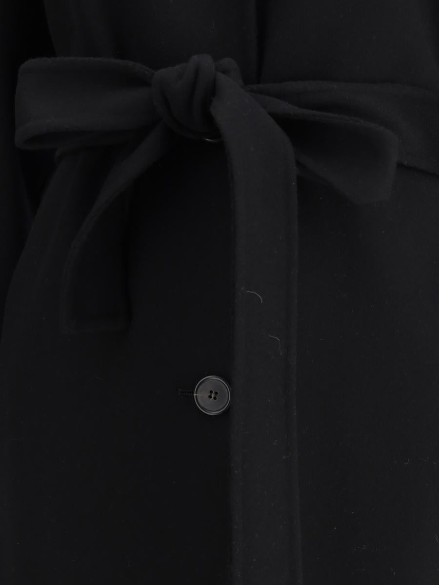 Der lange Mantel von Aftercoat besticht durch einen klassischen Rundhalsausschnitt, der ihm einen eleganten, dezenten Look verleiht. Der Knopfverschluss vorne verleiht ihm einen Hauch von Raffinesse, während die passende geknotete Schärpe an der Taille eine individuelle Passform ermöglicht und so eine klare Silhouette schafft. Die beiden seitlichen Leistentaschen sorgen für zusätzliche Funktionalität, ohne die klare Ästhetik des Designs zu beeinträchtigen.