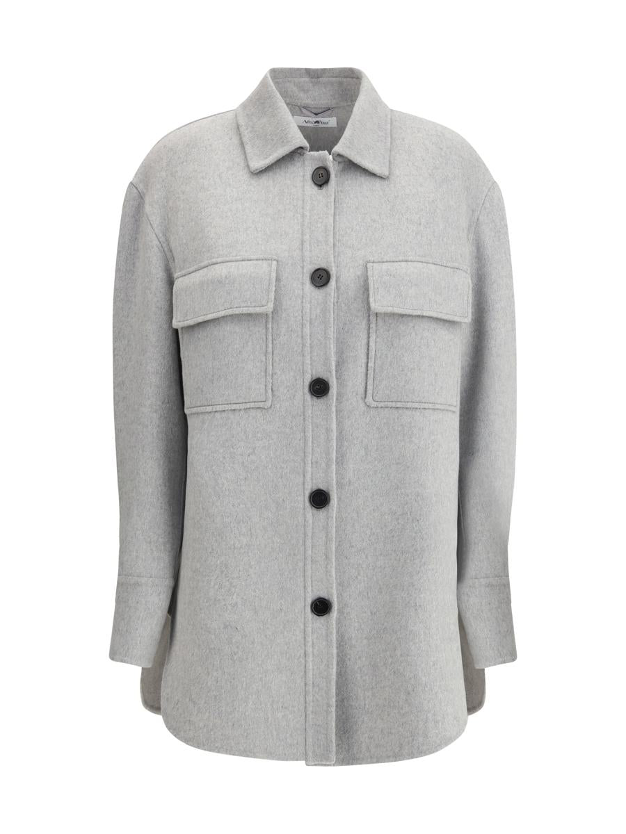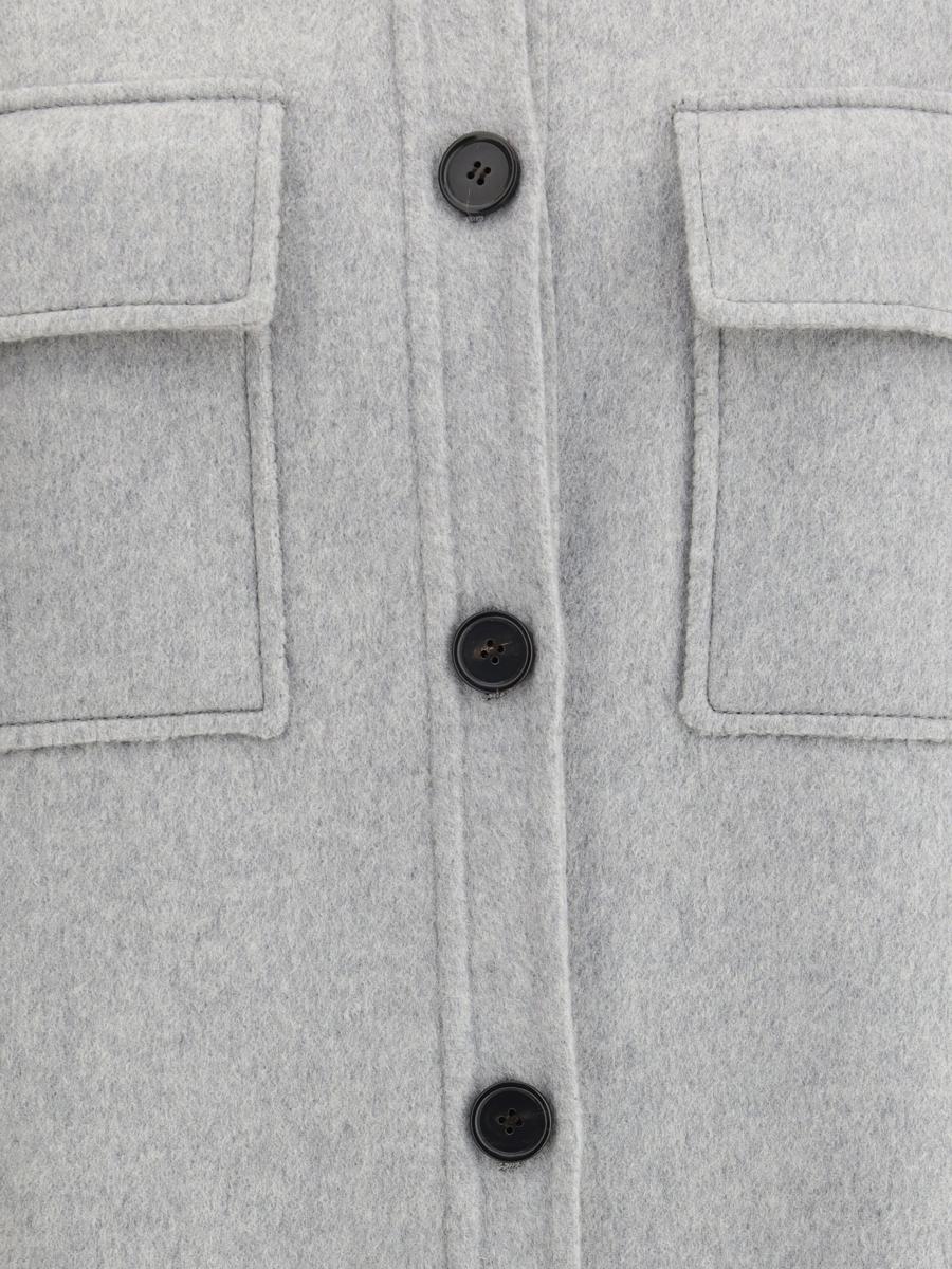 DER KURZE HEMDMANTEL VON AFTERCOAT VEREINT FUNKTIONALITÄT UND STIL IN EINEM ELEGANTEN UND VIELSEITIGEN DESIGN. DER KLASSISCHE KRAGEN VERLEIHT IHM EINEN HAUCH VON RAFFINESSE, WÄHREND DER KNOPFVERSCHLUSS VORNE EIN TRADITIONELLES DETAIL HINZUFÜGT. DIE BEIDEN AUFGESETZTEN PATTENTASCHEN VORNE SIND FUNKTIONAL UND VERVOLLSTÄNDIGEN DEN LOOK MIT EINEM HAUCH VON SCHICKER SCHLICHTHEIT.