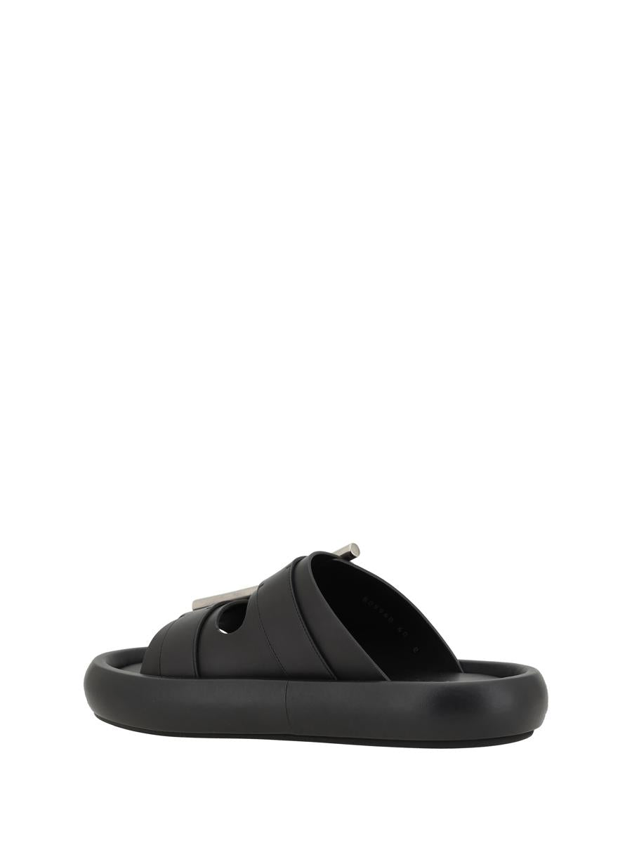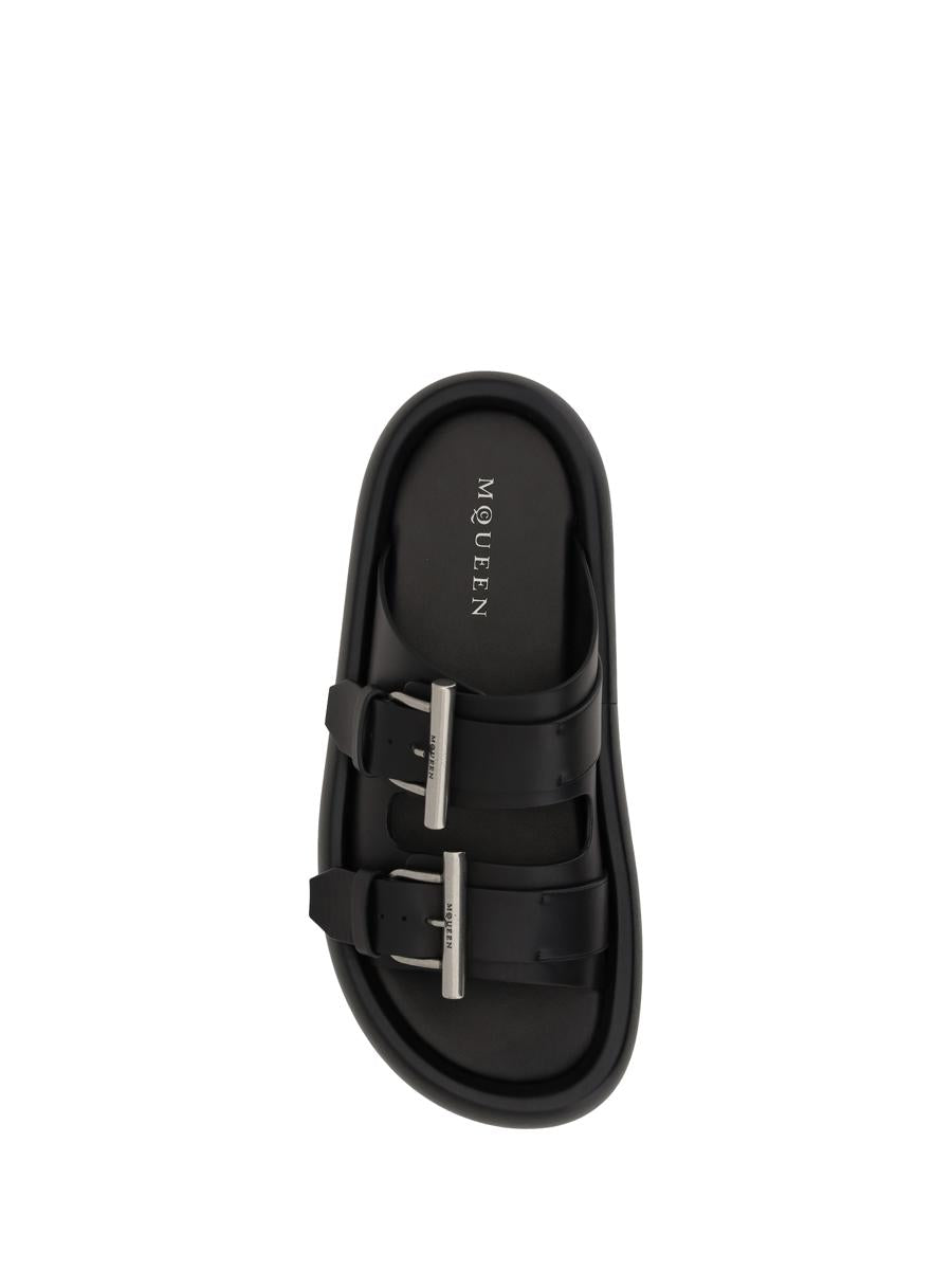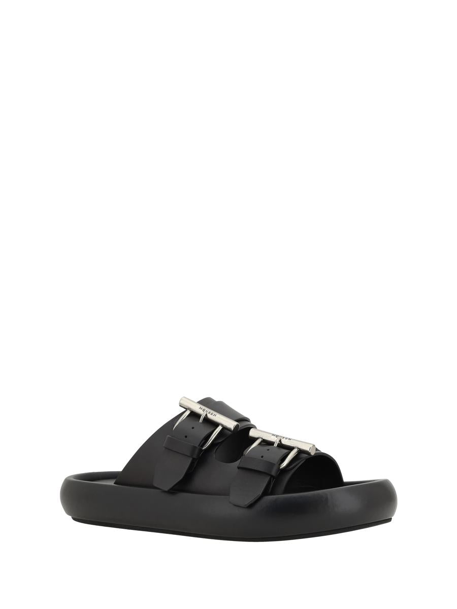 DIE LEDERSANDALEN VON ALEXANDER MCQUEEN ZEICHNEN SICH DURCH EIN KRÄFTIGES UND RAFFANTES DESIGN MIT ZWEI LEDERRIEMEN MIT METALLSCHNALLE, DIE JEDER MIT DEM IKONISCHEN LOGO DER MARKE VERZIERT SIND. DIE GEWÖLBTE SOHLE UND DAS PLATEAU SORGEN FÜR EINEN KRÄFTIGEN, MODERNEN LOGO-LOOK, WÄHREND DIE LOGO-GEPRÄGTE EINLEGESOHLE MIT DRUCKNÄPFEN EINEN HAUCH VON EXKLUSIVITÄT VERLEIHT. DIESE SANDALEN VEREINEN KOMFORT UND STIL UND SPIEGELN DIE EINZIGARTIGE UND ZEITGEMÄSSE ÄSTHETIK DER MARKE WIDER.