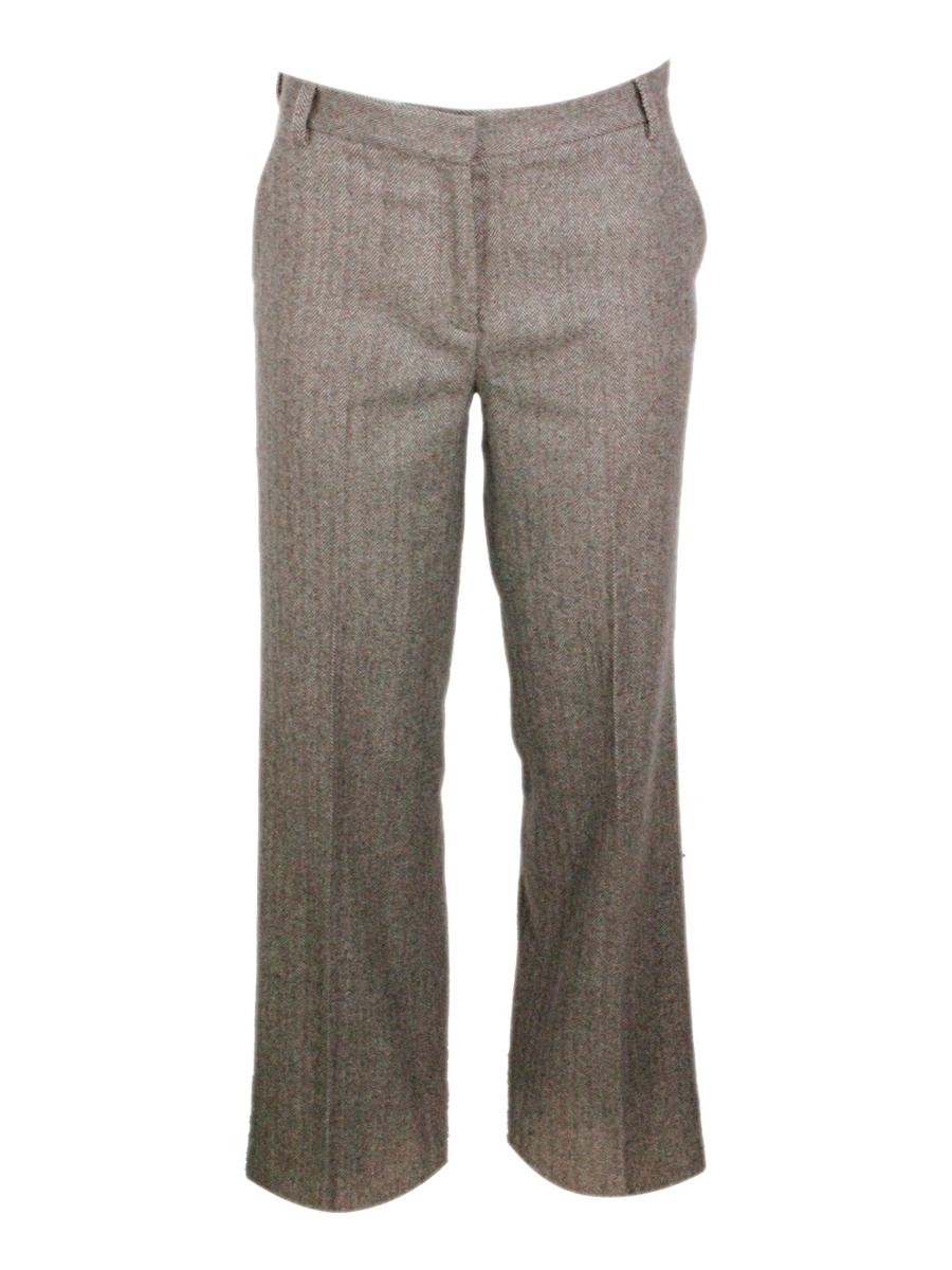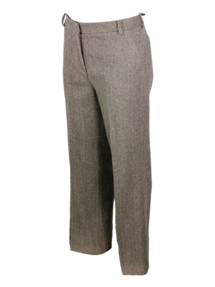 Weite Fischgrät-Tweedhose aus feiner und weicher Stretchwolle mit Reißverschluss und Leistentaschen. Passanten lebendig