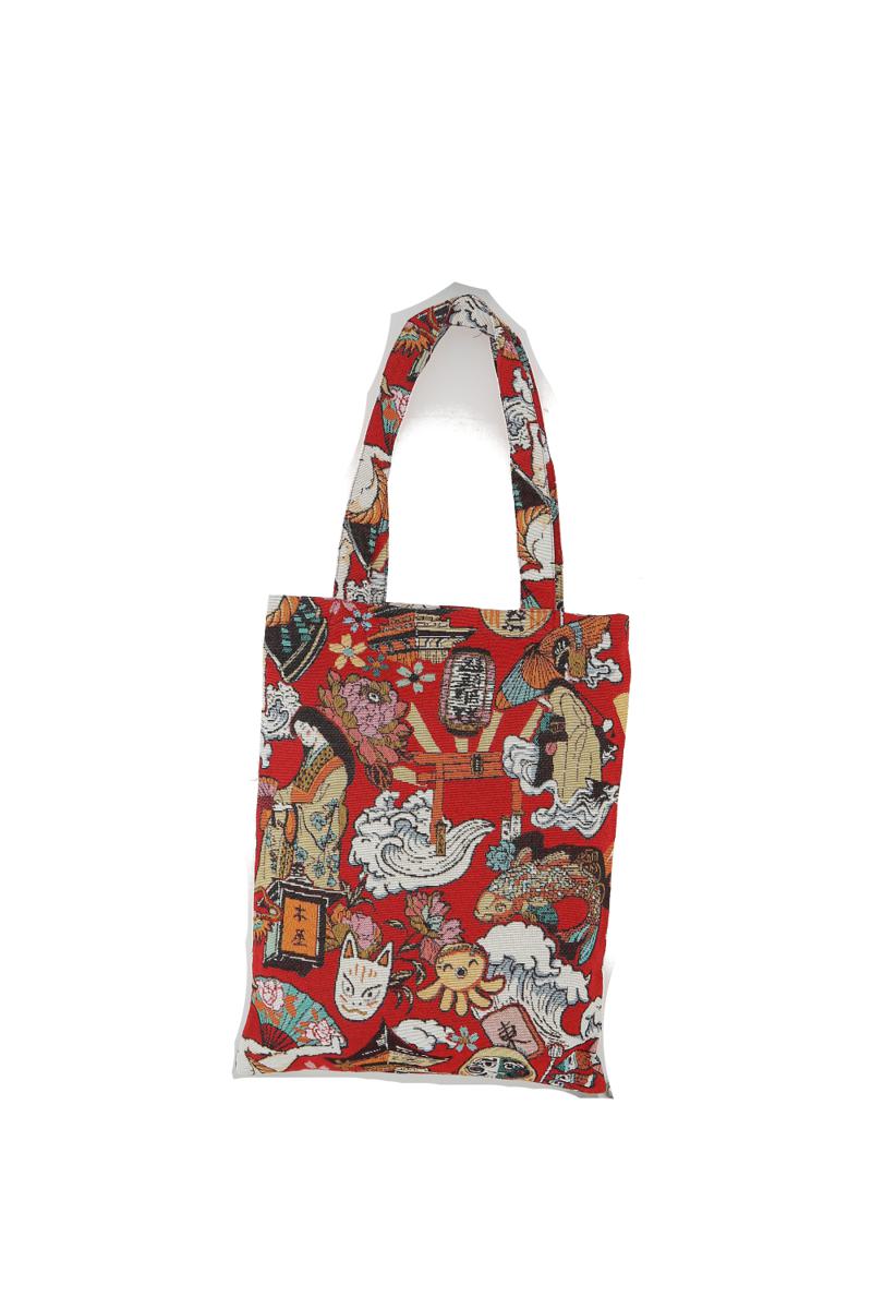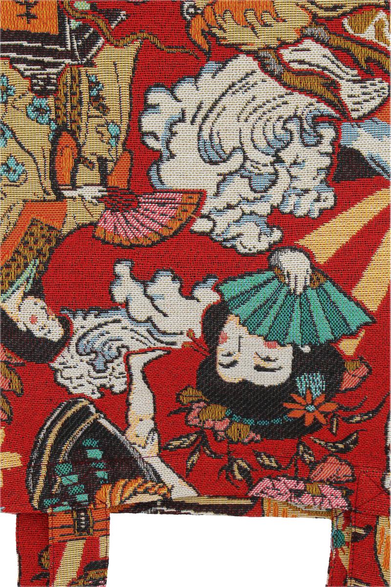 Bless-Einkaufstasche aus Jacquardstoff mit rotem Japan-Motiv und Doppelgriffen. Innen ungefüttert.