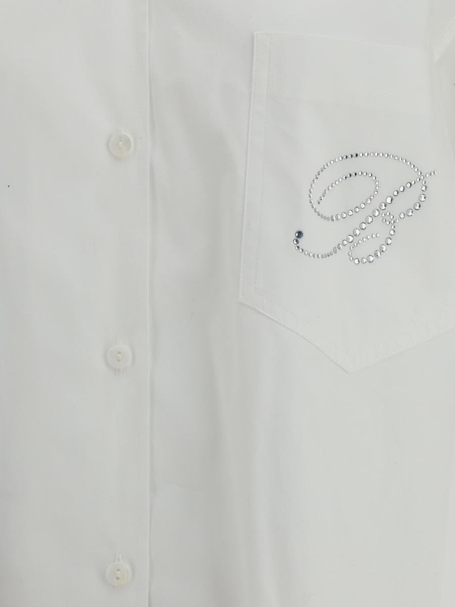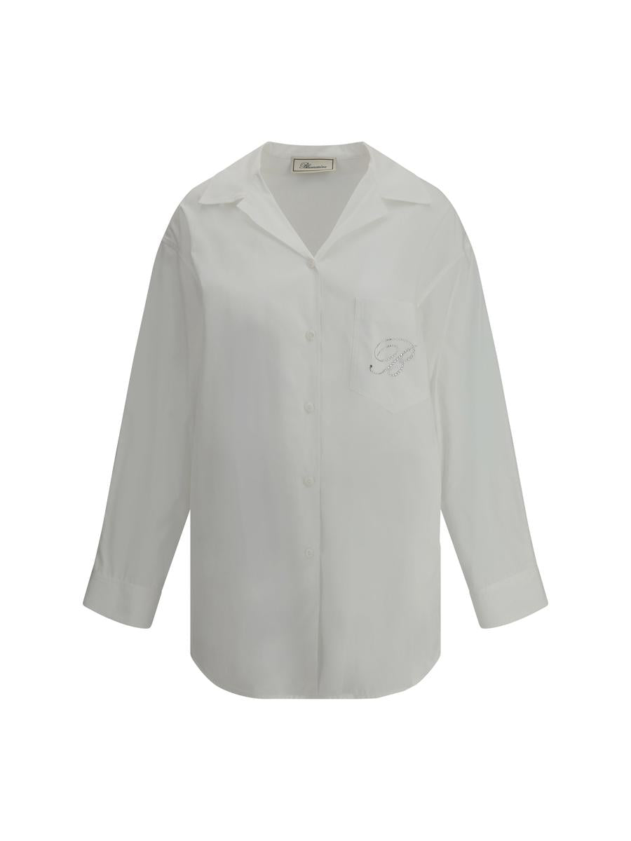 DIE BLUSE VON BLUMARINE IST EIN ELEGANTES UND RAFFINIERTES STÜCK MIT EINEM DESIGN, DAS MIT RAFFEINEN DETAILS SPIELT. DER FRANZÖSISCHE KRAGEN SORGT FÜR EINEN HAUCH VON KLASSE, WÄHREND DER KNOPFVERSCHLUSS VORNE FÜR EINEN CLASSIC UND ORDENTLICHEN LOOK SORGT. DAS IKONISCHE LOGO DER MARKE, DAS MIT STRASSSTEINEN AUF DER VORDERSEITE APPLIZIERT IST, FÄLLT SOFORT INS AUGE UND ERZEUGT EINEN GLÄNZENDEN EFFEKT, DER DAS DESIGN BEREICHERT, OHNE ES ZU ÜBERDRÜCKEN. DIESES HEMD IST PERFEKT FÜR EINEN ELEGANTEN UND DOCH MODERNEN LOOK UND LÄSST SICH LEICHT MIT FORMELLEN HOSEN ODER JEANS KOMBINIEREN, UM KOMFORT UND STIL ZU vereinen.