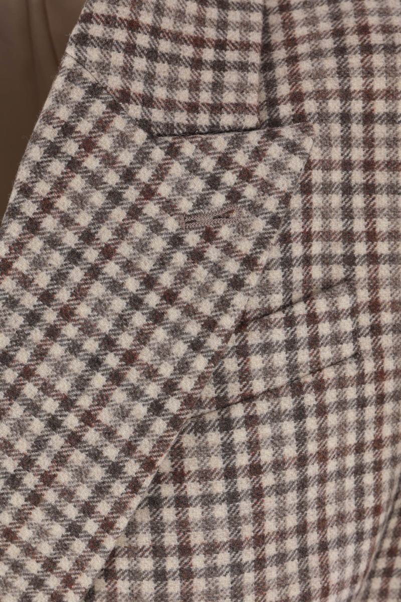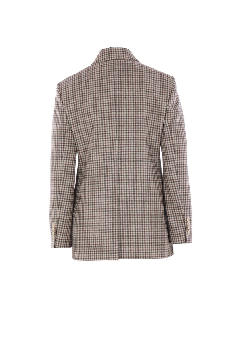 Brunello Cucinellis zweireihiges Sakko aus kariertem Wollflanell. Mit spitzem Revers, Knopfverschluss vorne, langen Ärmeln mit geknöpften Manschetten, mehreren Taschen, einem zentralen Schlitz und vollständig gefütterter Innenseite. Abgerundet wird das Design durch die ikonische funkelnde Schmucksteinstickerei auf der Kragenrückseite.