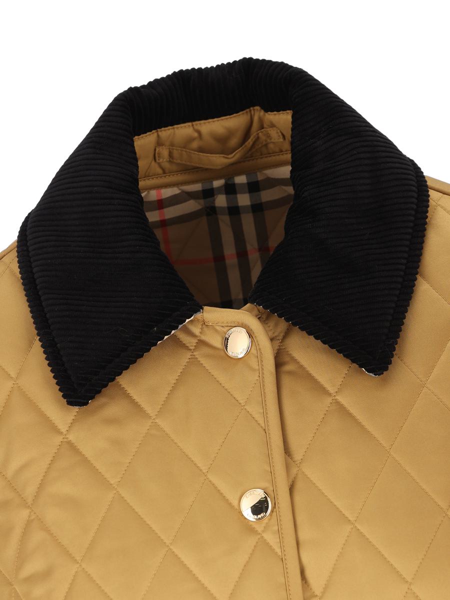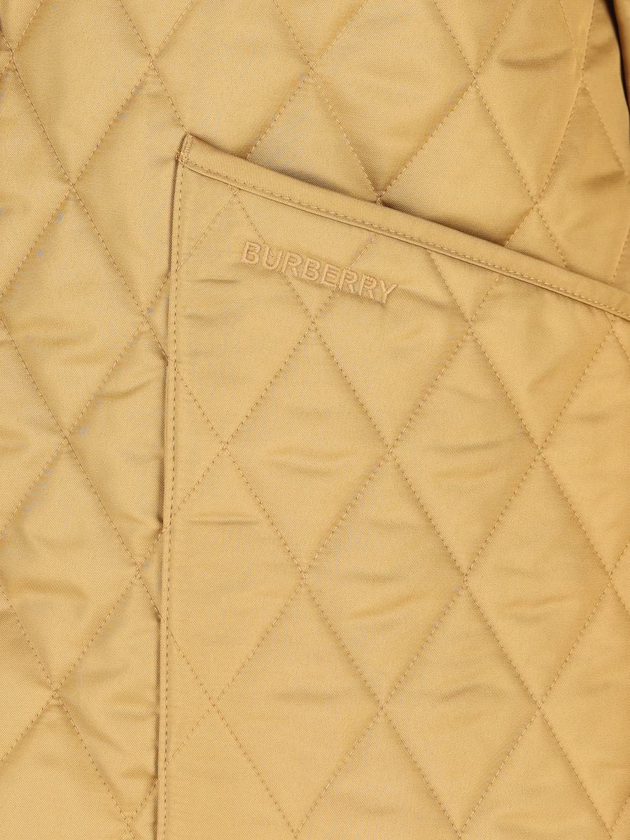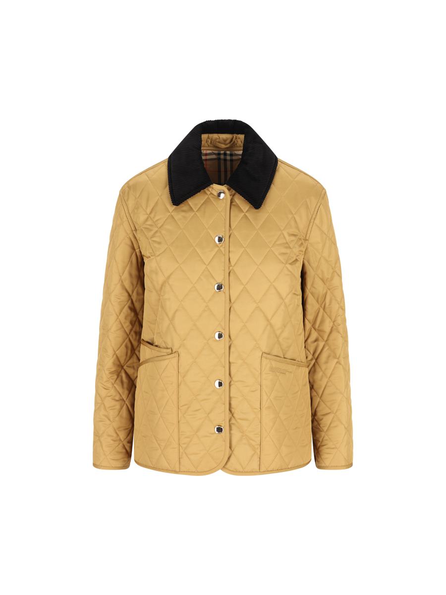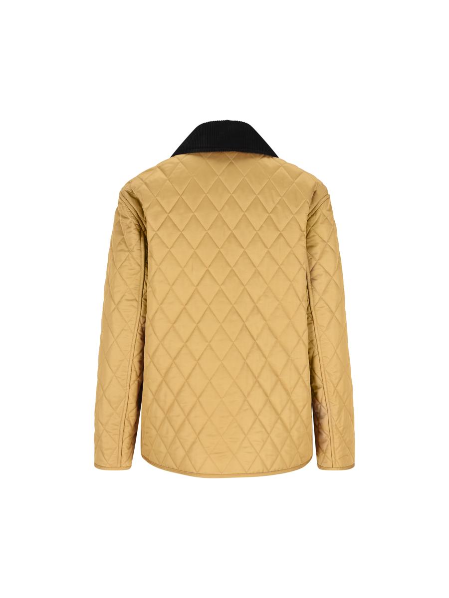Eine britische Garderobenikone, neu interpretiert mit einem modernen Twist: Diese Steppjacke von Burberry vereint Funktionalität mit alltäglicher Eleganz. Sie ist aus recyceltem Funktionsgewebe gefertigt und verfügt über eine Rautensteppung für Leichtigkeit und Wärme, während ein kontrastierender Cordkragen einen traditionellen Touch verleiht. Die Innenseite zeigt das unverwechselbare Baumwollfutter im Burberry-Karomuster, das charakteristische Detail der Marke. Goldene Druckknöpfe, große aufgesetzte Taschen und ein geprägtes Etikett am Ärmel vervollständigen ein Kleidungsstück mit normaler Passform, das die Übergangszeit stilvoll begleitet. – Außenmaterial: 100 % recyceltes Polyester (mind. 70 %) – Farbe: Camel – Verarbeitung: 100 % Baumwolle (Cordkragen) – Futter: 100 % Baumwolle mit Burberry-Karomuster – Wattierung: 100 % Polyester – Details: Druckknopfverschluss, aufgesetzte Seitentaschen, Logoetikett aus Silikon – Artikelnummer: 8108989A1420