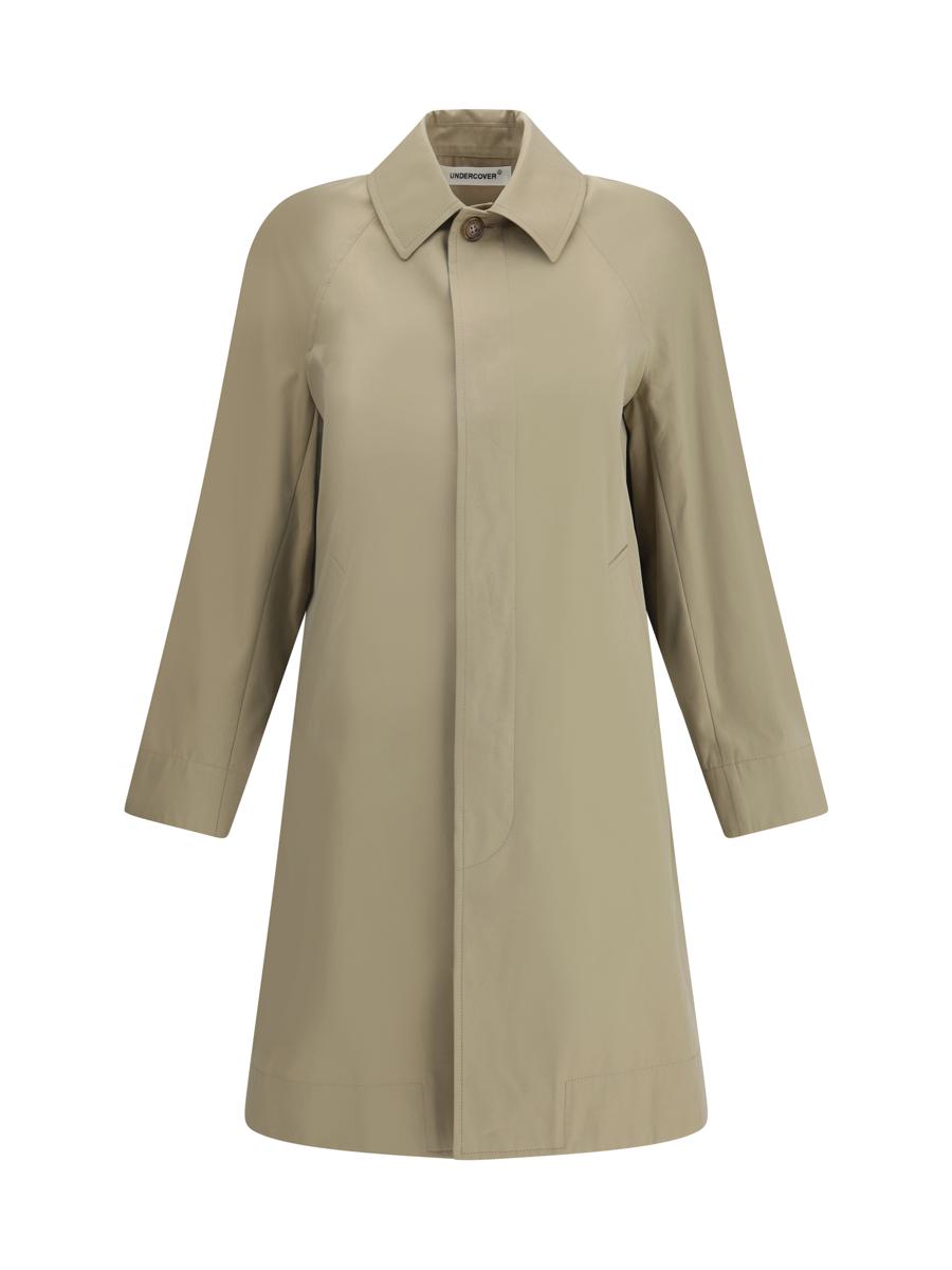 DER BAUMWOLL-TRENCHCOAT VON UNDERCOVER IST EIN SCHLICHTES, MODERNES STÜCK. ER VERFÜGT ÜBER EINEN KLASSISCHEN KRAGEN UND EINEN VERDECKTEN KNOPFVERSCHLUSS VORNE FÜR EINEN CLASSIC, EDLEN LOOK. DIE BEIDEN SEITLICHEN LEISTUNGSTASCHEN SIND PRAKTISCH, OHNE AUF STIL ZU VERZICHTEN. EIN RÜSCHENDETAIL AUF DER RÜCKSEITE SORGT FÜR EINE EINZIGARTIGE UND DYNAMISCHE NOTE UND MACHT DEN TRENCHCOAT ZU EINEM MARKTSTARKEN UND VIELSEITIGEN KLEIDUNGSSTÜCK.