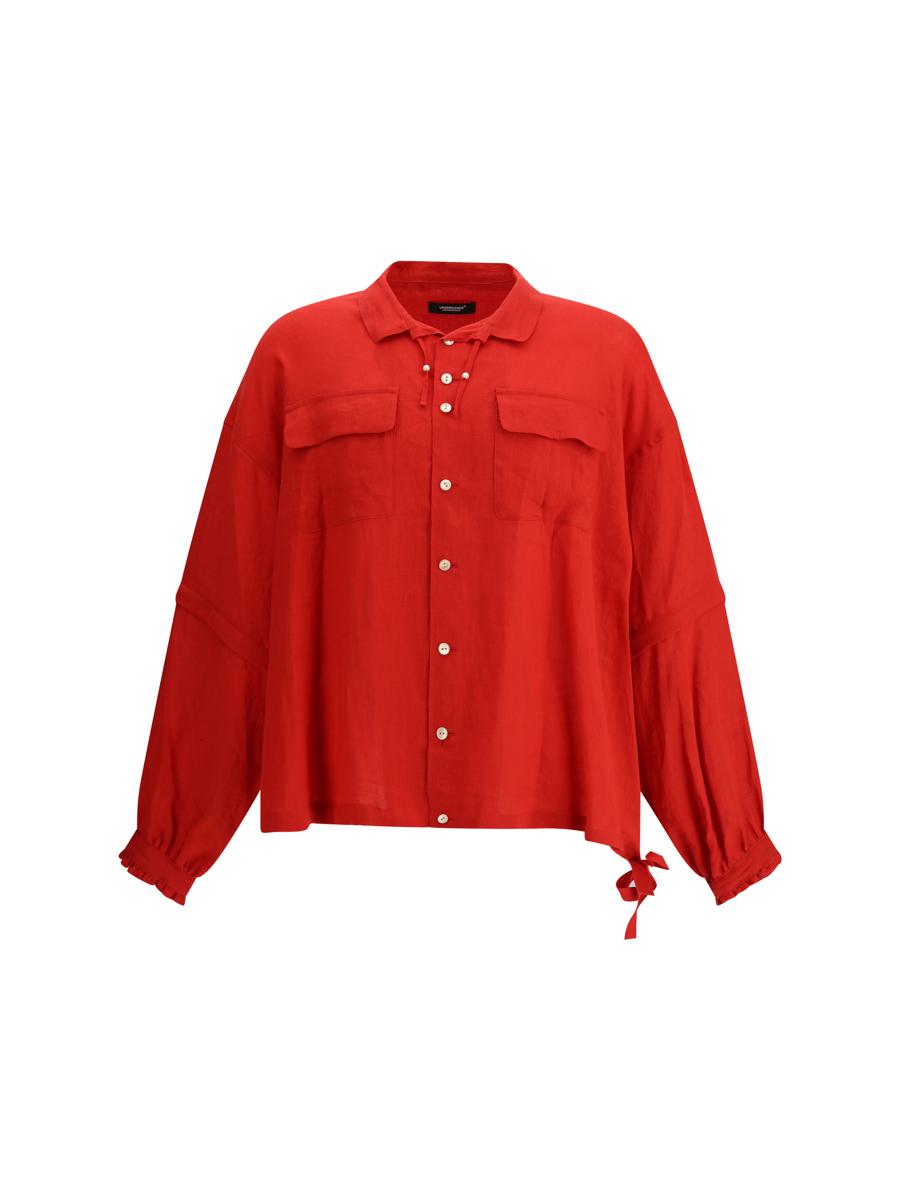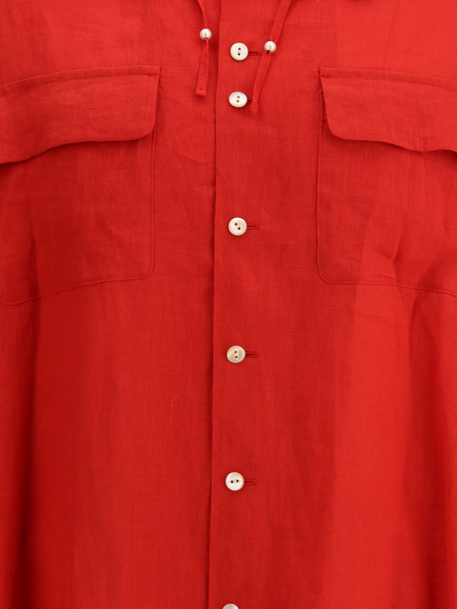 DAS ÜBERGRÖSSE LEINENHEMD VON UNDERCOVER KOMBINIERT MODERNE LINIEN UND FUNKTIONELLE DETAILS FÜR EINEN KRÄFTIGEN URBANEN LOOK. ES HAT EINEN KLASSISCHEN KRAGEN MIT VERSTELLBAREM KORDELZUG, EINEN KNOPFVERSCHLUSS VORNE UND ZWEI PASTENTASCHEN AUF DER BRUST. DIE ÄRMEL SIND AUF ELLENBOGENHÖHE MIT EINEM REISSVERSCHLUSS VERSTELLBAR, WÄHREND VERSTELLBARE KNOPFMANSCHETTEN UND EIN KORDELZUG AM SAUM EINE INDIVIDUELLE PASSFORM SORGEN. DER ÜBERGRÖSSE SCHNITT VERVOLLSTÄNDIGT EIN VIELSEITIGES UND RAFFES KLEIDUNGSSTÜCK, PERFEKT FÜR ALLE, DIE STIL UND EXPERIMENTALITÄT SUCHEN.