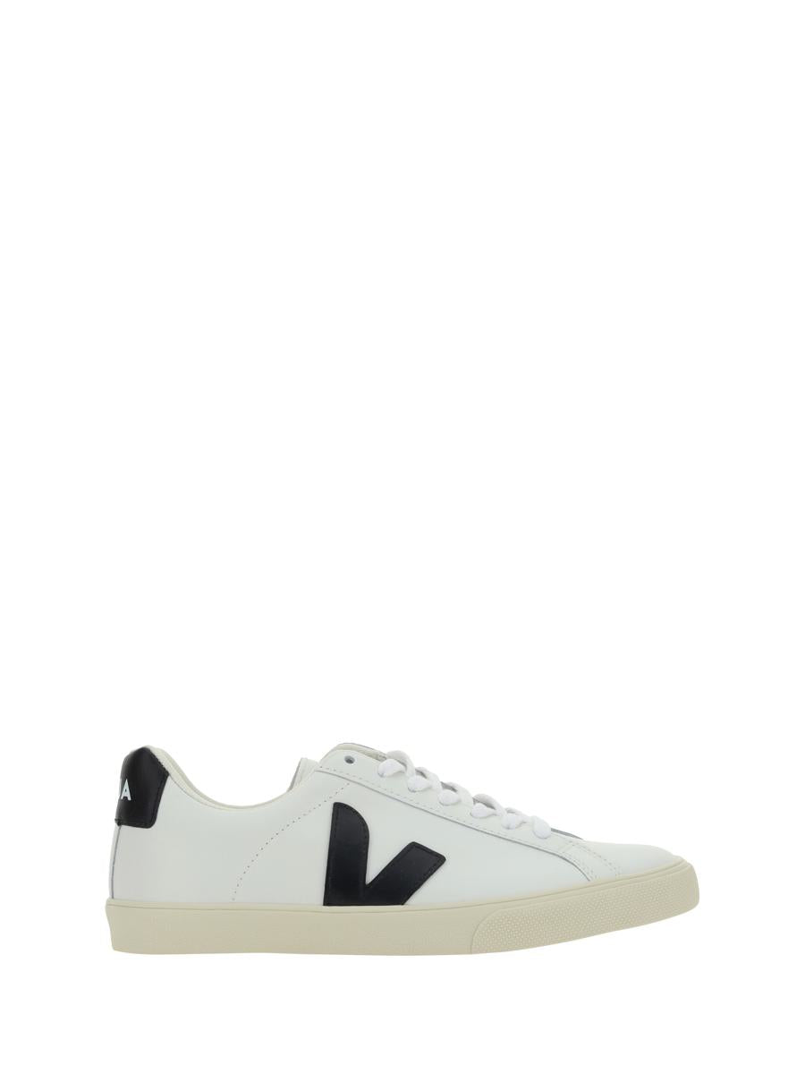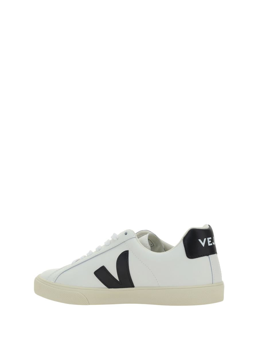 VEJA-LEDER-ESPLAR-SNEAKER, RUNDE ZEHENSCHUH, SCHNÜRVERSCHLUSS VORNE, KONTRASTIERENDER AUFGEBRACHTER IKONISCHER MARKENLOGO-PATCH AUF DER SEITENEINSATZ, GESTICKTES MARKENSCHRIFT-ETIKETT AUF DER VORDEREN ZUNGE, KONTRASTIERENDER MARKENSCHRIFT-PATCH AN DER FERSE.