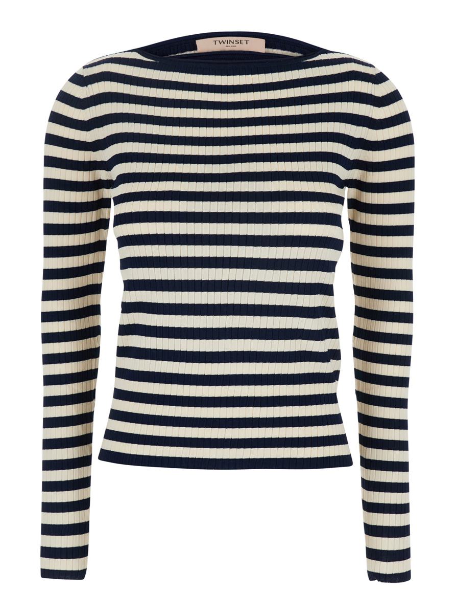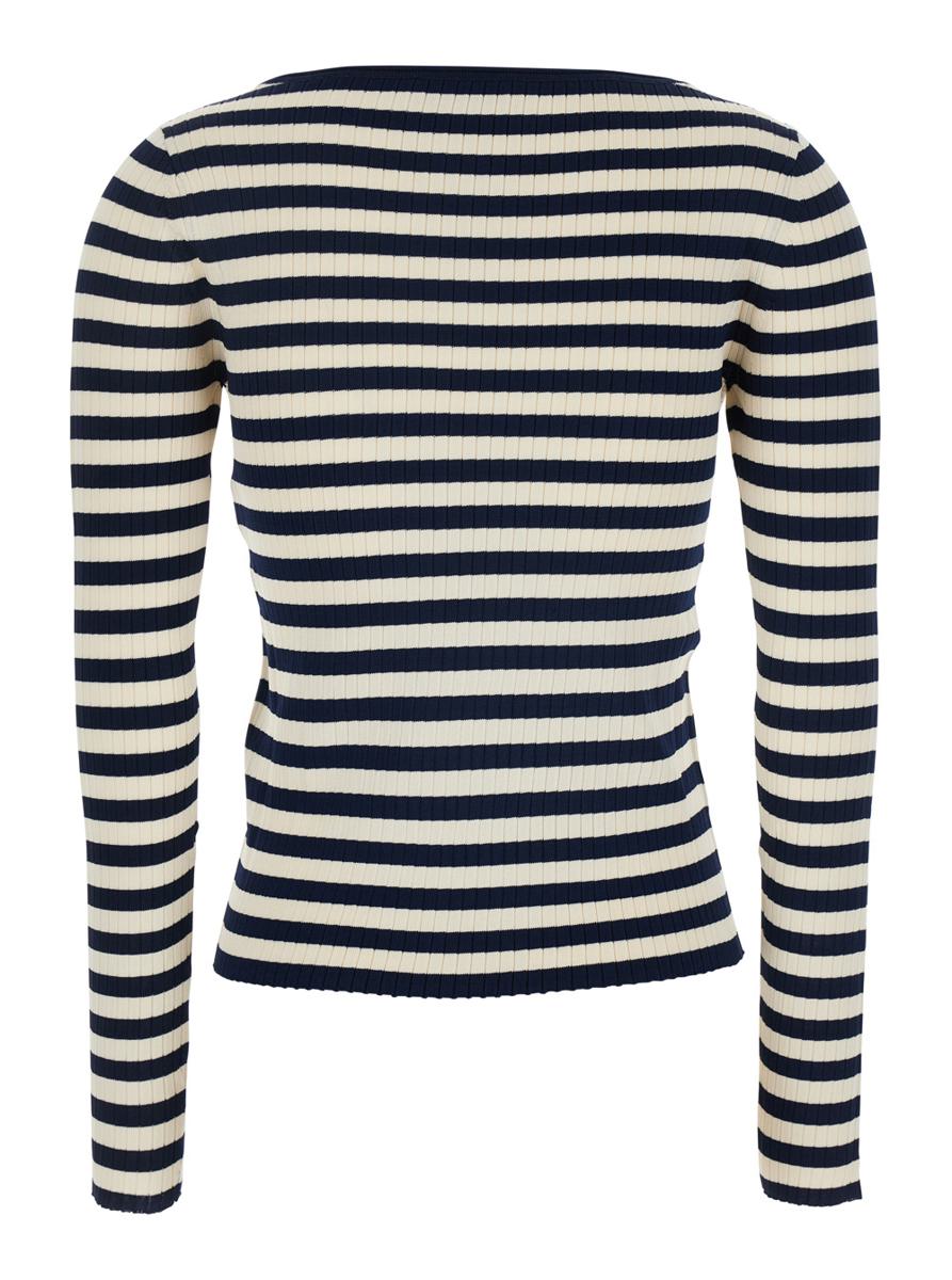 Weiß-schwarzes Top mit geripptem Design und durchgehendem Streifenmotiv aus Viskose für Damen