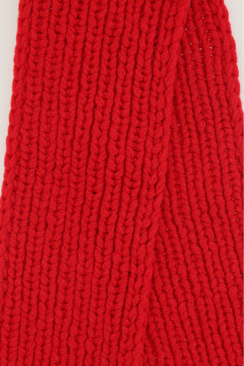 Handgefertigter Wommelsdorff-Schal aus rotem Kaschmirstrick.